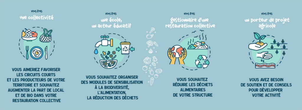 Depuis 2019, des rencontres collectives ont eu lieu et ont permis de rassembler plus de 100 acteurs territoriaux autour d’ateliers : Sensibiliser les publics à une alimentation saine et durable pour tous, Gaspillage alimentaire professionnel, Approvisionnement local bio dans les structures publiques et Installation de porteurs de projets alimentaires locaux et bio.